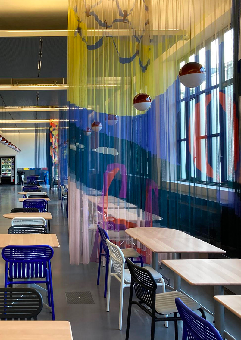Commande spéciale de l’agence d’architecture Ykra en charge de l’aménagement de la nouvelle cafétéria du campus de la Haute École d’Art et de Design genévoise.