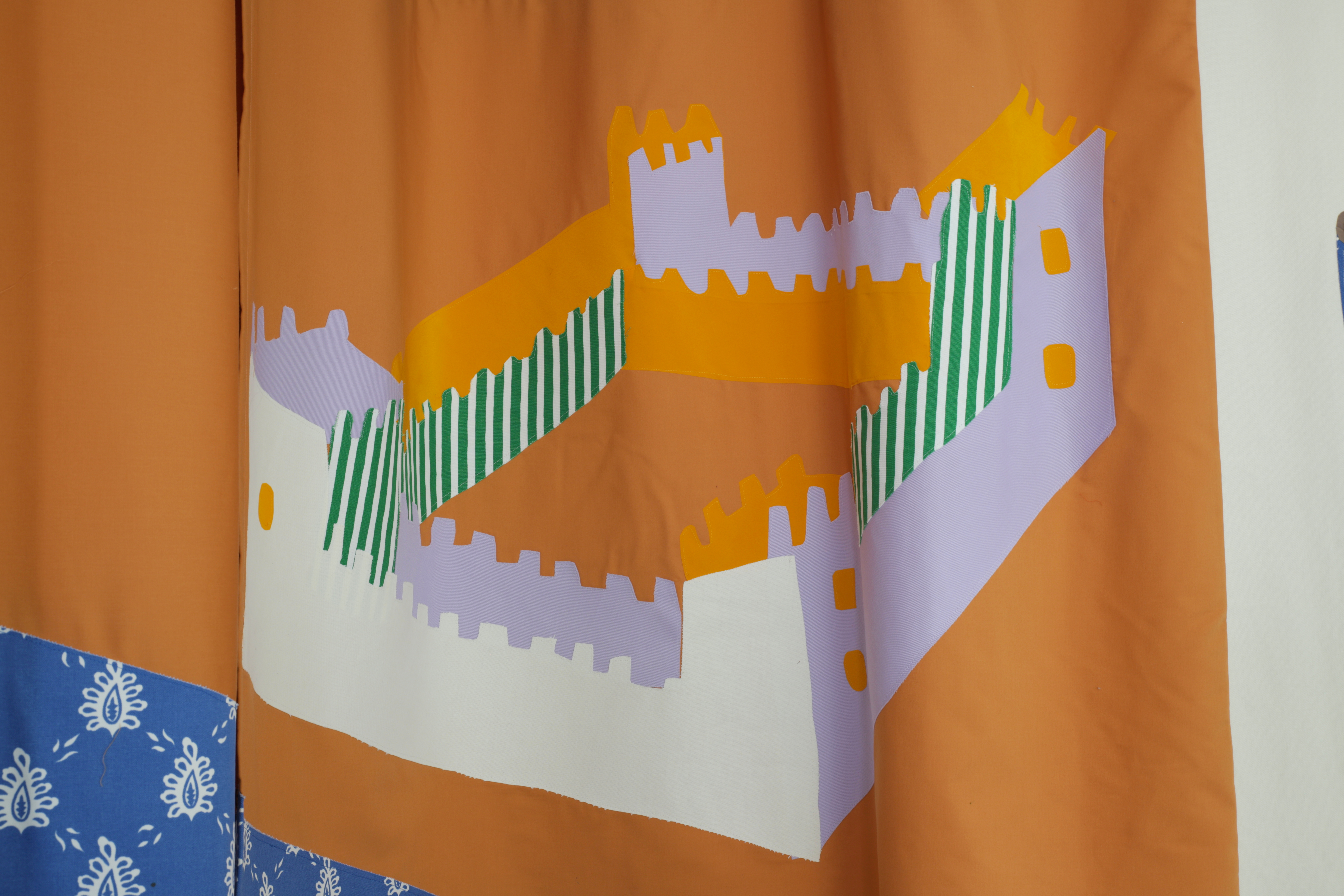 Ces rideaux sont faits en patchwork et appliqués textiles à l’atelier, avant de prendre vie dans la chambre des enfants.