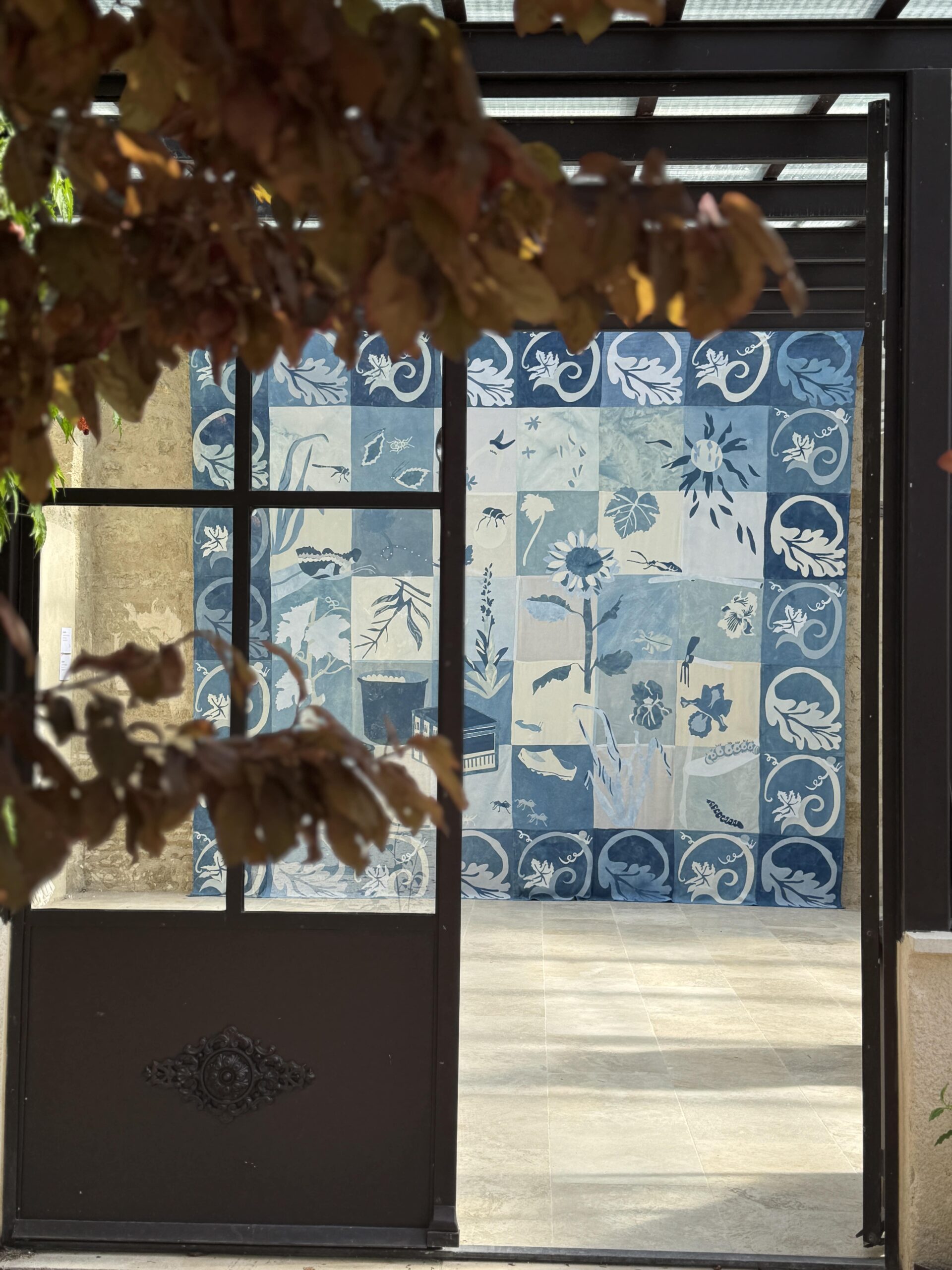 Dans le cadre de la biennale d’art contemporain Sète-Lisbonne SLA, deux tentures monumentales sont présentées. Chaque tenture de 5 mètres par 6 mètres a été réalisée à la main à partir de textiles teints à l’indigo un par un. Ces oeuvres textiles font référence aux azulejos décoratifs portugais, comme un hommage aux décors architecturaux mettant ici en valeur les mondes invisibles de la Terre et de la Mer. Les pièces sont réalisés à partir de morceaux de coton, de lin et de soie afin d’obtenir un camaïeu de bleus pluriels.