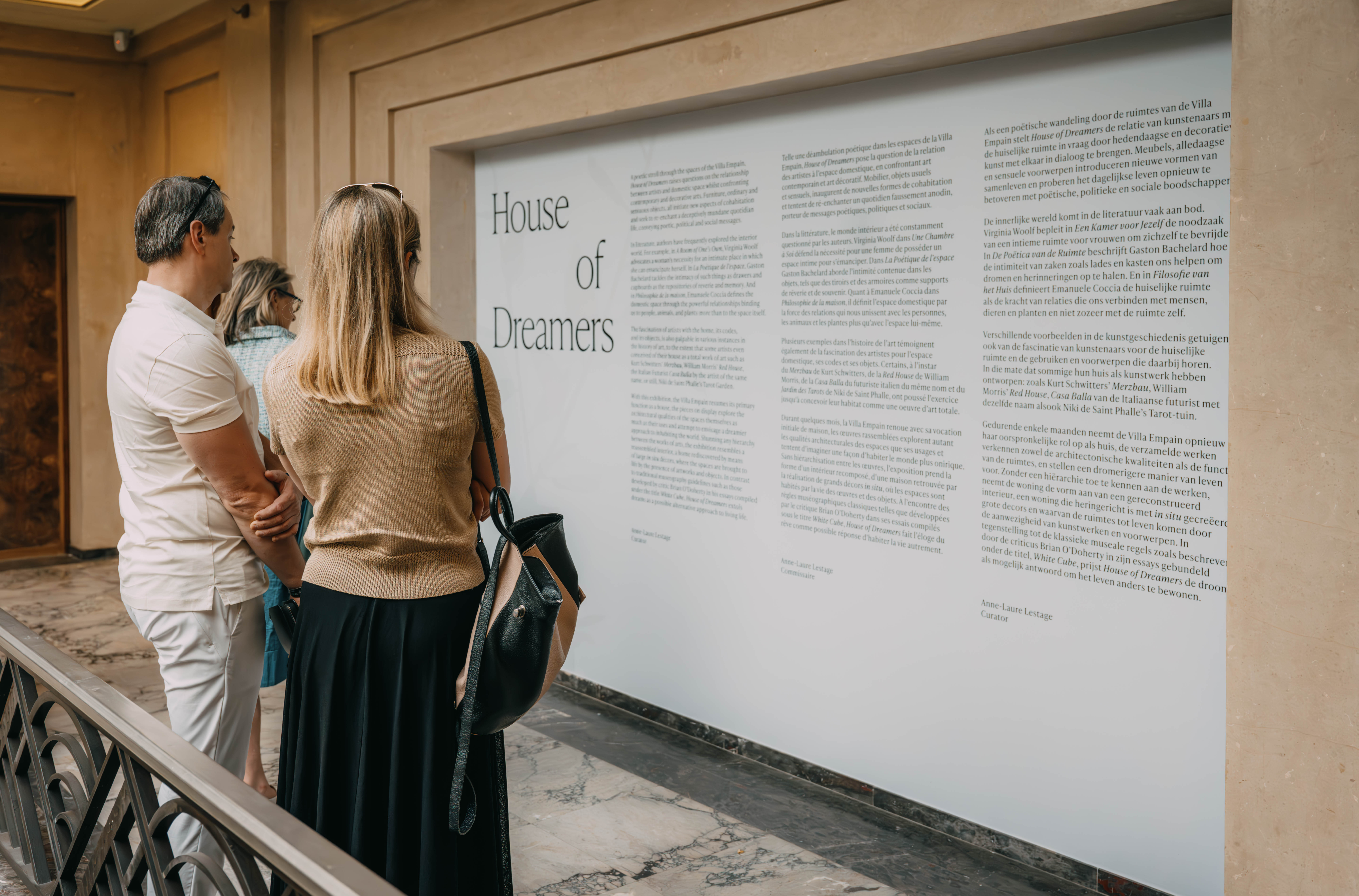 La commissaire d’exposition Anne-Laure Lestage imagine « House of Dreamers », une déambulation poétique dans les espaces de la Villa Empain, demeure Art déco Bruxelloise dirigée aujourd’hui par la fondation Boghossian. Au fil des chambres et salons, les œuvres rassemblées explorent autant les qualités architecturales des espaces que leurs usages. Ce parcours pose la question de la relation des artistes à l’espace domestique, en convoquant la notion de décoratif dans les arts moderne et contemporain. Les Crafties créent à l’occasion un rideau panoramique illustré d’une partie sans règles, d’un terrain surréaliste entre jeux de balles et de raquettes.