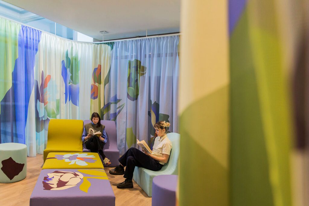 2024 MontpellierDans le cadre d’une résidence en entreprise, l’association Mécènes du Sud invite les Crafties à intervenir au sein du nouveau bâtiment du siège de la Banque Populaire du Sud à Montpellier. Durant une année, le studio a travaillé avec un groupe de volontaires afin de développer leur futur espace de détente. Le fruit de cette rencontre se matérialise dans un “jardin intérieur”, un espace en textile modulable illustré.